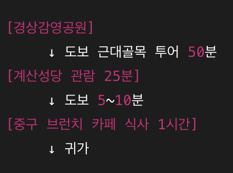 | 오후 12:00 | 계산성당 이동 | 도보 약 5분 | 5분 |